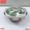 A food-grade PVC tiffin box with a metal exterior offers a durable and convenient solution for carrying your meals on the go. Here’s a description: