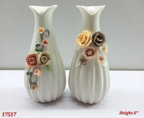 These vases are adorned with delicate, handcrafted rose and other floral designs, bringing an elegant and artistic touch to your living space. The multi-colored rose motifs on an off-white base make them even more captivating.