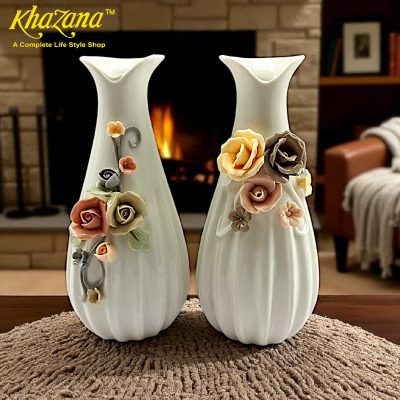 These vases are adorned with delicate, handcrafted rose and other floral designs, bringing an elegant and artistic touch to your living space. The multi-colored rose motifs on an off-white base make them even more captivating.