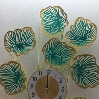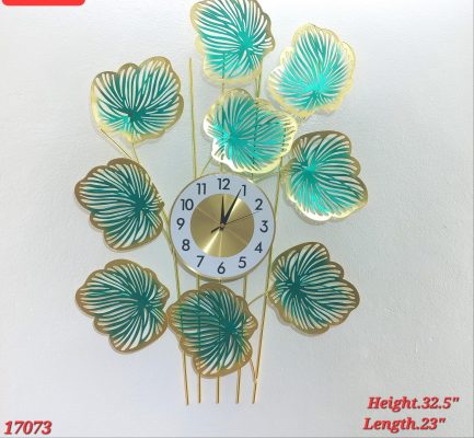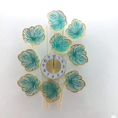 Bring the beauty of nature indoors with this captivating Vertical Teal & Gold Leaf Design Wall Clock. This stunning timepiece features an artistic arrangement of intricate metallic leaves in a vibrant teal and shimmering gold finish, gracefully stemming upwards to create a beautiful botanical display. The central clock face, with its clear numbering and elegant hands, provides easy readability while seamlessly integrating into the natural design. Perfect for adding a refreshing and elegant touch to any wall, this clock is a striking decorative piece that combines functionality with a serene, nature-inspired aesthetic