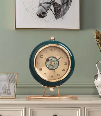 Very High Quality Ceramic and Metal Green and Golden Color Body Table Desk Clock