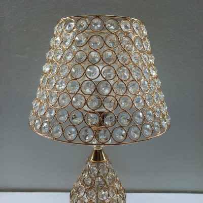 - Adorned with a meticulously Metal With Crystal stone shade , this lamp exudes a warm and inviting glow, perfect for creating a cozy atmosphere in any room. The included LED light source ensures energy efficiency and long-lasting brilliance, making it an eco-conscious choice for both style and sustainability.
