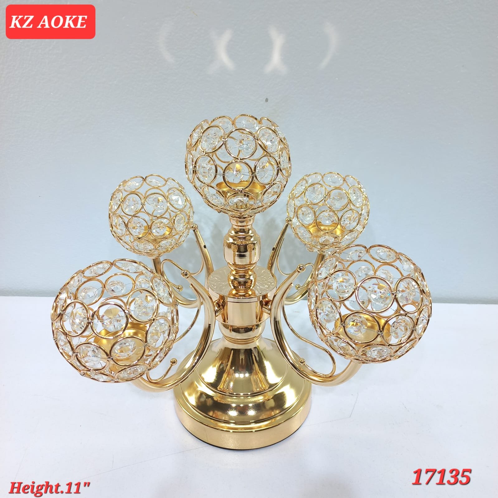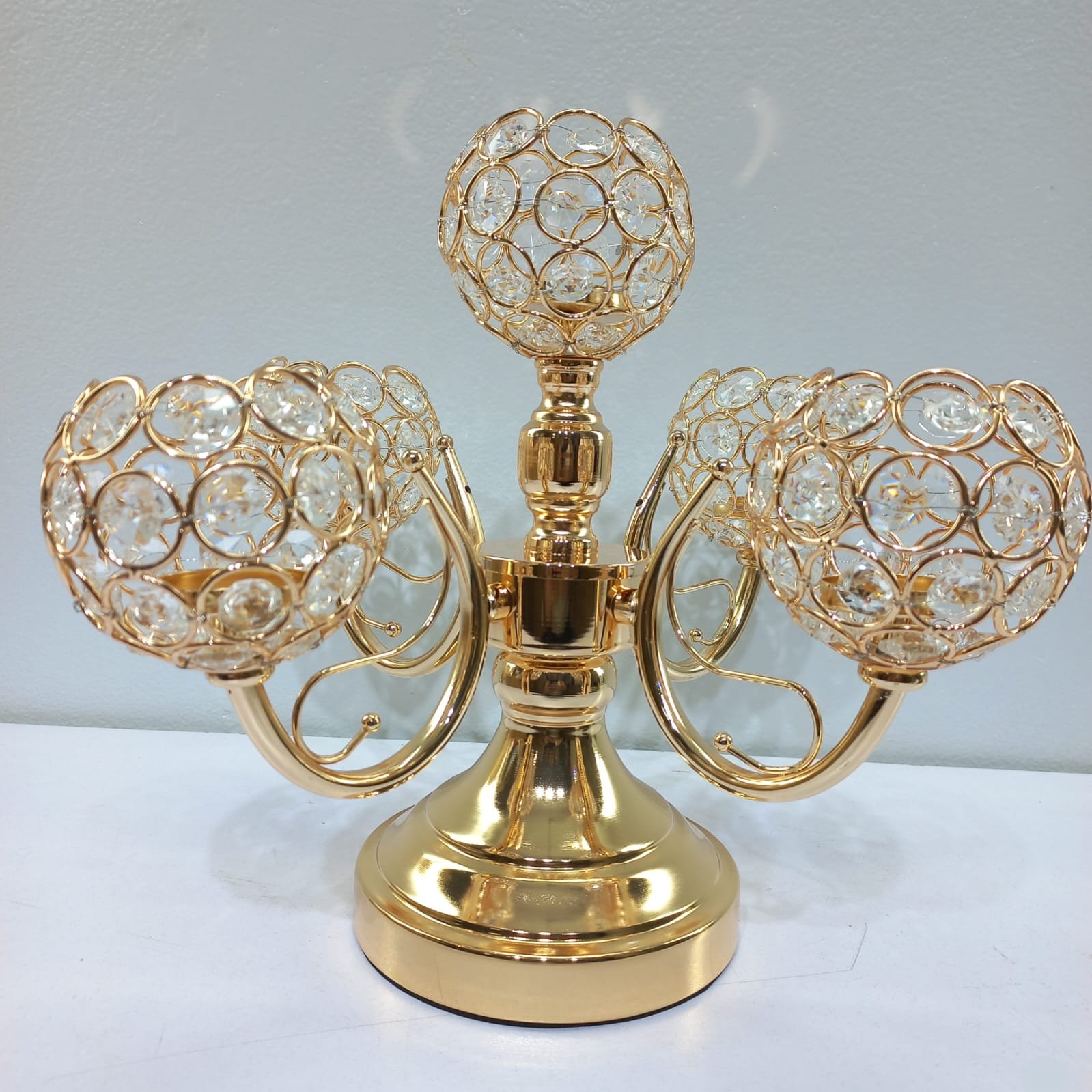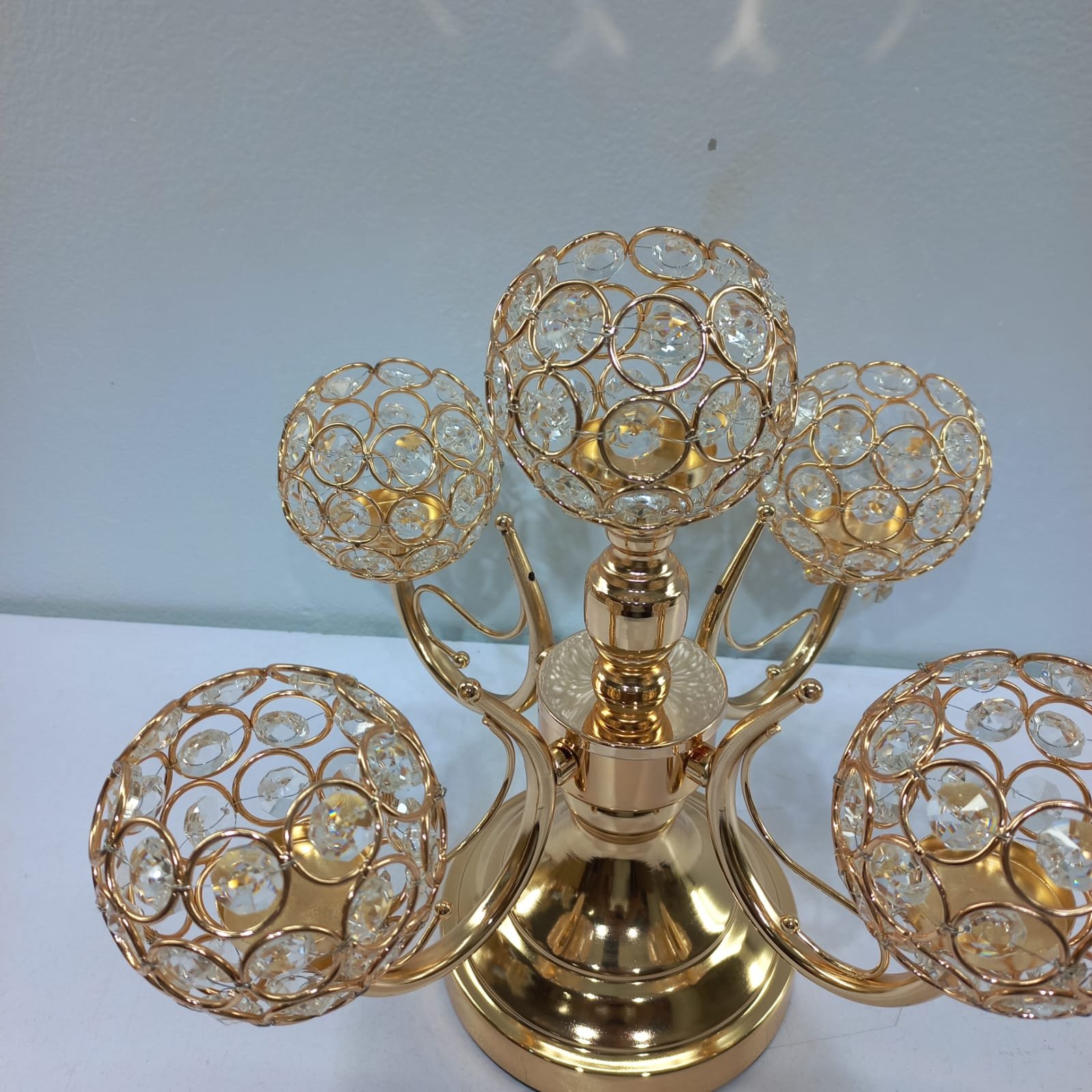 Luxury 5Arm Gold Crystal Globe Candelabra