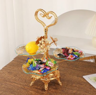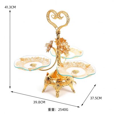 Add a touch of opulence and sophistication to your gatherings with this exquisite 3-tier decorative serving stand. A masterpiece of design, this stand is perfect for showcasing an array of fruits, desserts, pastries, or appetizers, making it a stunning centerpiece for any occasion.