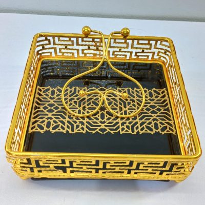 Just as much a decorative centerpiece, this flat napkin stand is both a practical addition for everyday use and special occasions indoors and out. Goes perfect with our Greek Key Tray! Crystal arm weight makes a it statement piece on any kitchen Counter