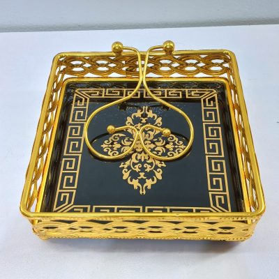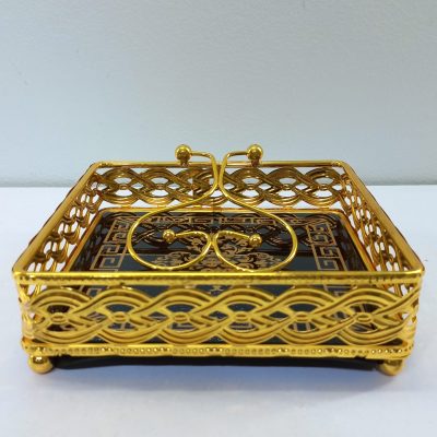 Just as much a decorative centerpiece, this flat napkin stand is both a practical addition for everyday use and special occasions indoors and out. Goes perfect with our Greek Key Tray! Crystal arm weight makes a it statement piece on any kitchen Counter