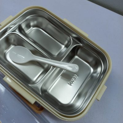 1. Metal Exterior: The outer shell of this tiffin box is made from high-quality metal, ensuring robustness and longevity. Whether you’re commuting to work or heading out for a picnic, rest assured that your meals are securely stored in a reliable container.