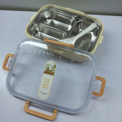 A food-grade PVC tiffin box with a metal exterior offers a durable and convenient solution for carrying your meals on the go. Here’s a description: