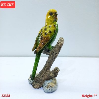 Art Green Branch Budgie Polyresin 19cm Polychrome Faince 12327