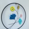 Add a touch of contemporary elegance and natural beauty to your space with this stunning circular metal wall sculpture. Encased in a sleek black frame, this 23-inch piece of art features a delicate arrangement of stylized flora.