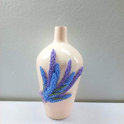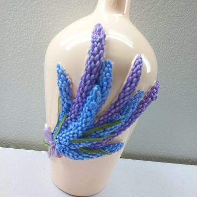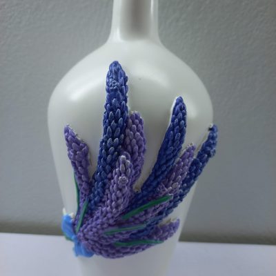 fibre Decorative, Lavender Flower, Frosted Glass Light Up Wine Bottle
