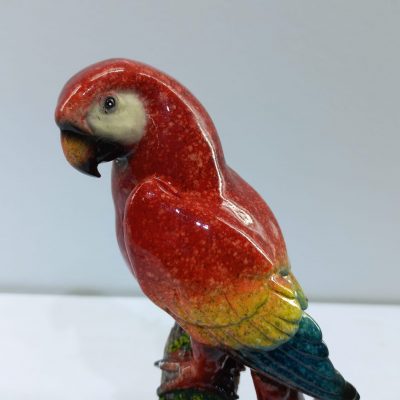 A beautiful decorative idea is this elegant parrot made from high-quality artificial stone and painted by hand. The glossy surface makes this decorative apagai sitting on a tree trunk a special one. Also suitable as a gift.