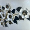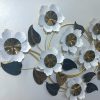 Providing a bold contrast, the deep brown or black leaves create a dramatic backdrop that makes the flowers and gold accents pop. Expertly crafted from metal, this three-dimensional artwork adds depth and visual interest, creating a captivating focal point in any room. It is a perfect statement piece for a living room, bedroom, or dining area.
