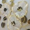 Adorn your wall with this sophisticated horizontal metal wall art, a graceful composition that merges natural elegance with contemporary design. This captivating piece features three prominent flowers with intricately textured white and gold petals radiating from striking dark, reflective centers. Cascading around these blooms are a mix of sleek golden leaves and bold dark, reflective leaf accents, along with circular golden disc elements, creating a dynamic interplay of light and shadow. The elegant design and harmonious color palette make it an ideal focal point for adding a touch of modern luxury and artistic flair to your living room, dining area, or entryway.