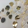 Artistic Grey and Gold Metal Flower Wall Decor with Teal Leaf