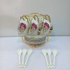 Elegant Golden and White Surai Set with 6 Cups and Serving Tray