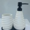 Add a touch of elegance to your bathroom or kitchen with this modern soap dispenser and tumbler set. Designed with a wavy textured finish in classic white, it includes a liquid soap dispenser, a tumbler, and a matching tray—keeping your space both stylish and organized.