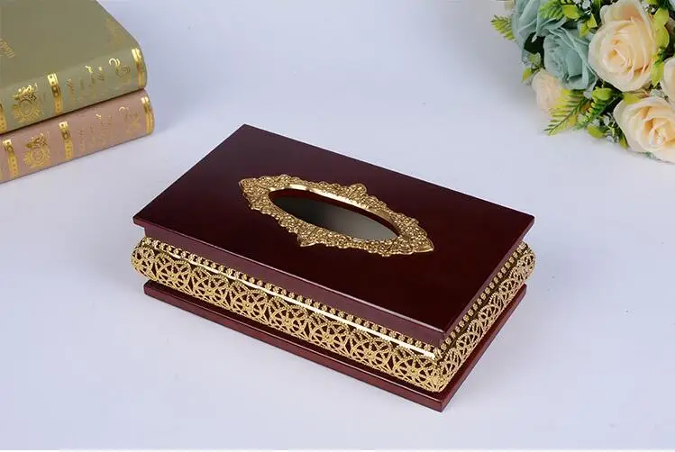 Europe luxurious rectangle hollow metal tissue box Material ; wood +metal iron Size ; length ;25.5CM, width 14.5cm,height 10cm Feature; top and base is wood, Middle metal frame hollow design. Notice; support wholesale , please contact us before your big order ,best price for you.