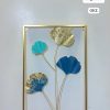 - Colors: The leaves have a mix of finishes, including a brilliant gold, a rich dark blue, and a vibrant teal blue.