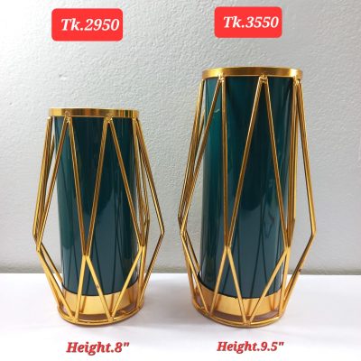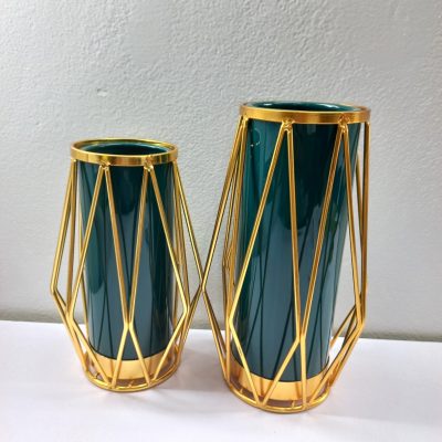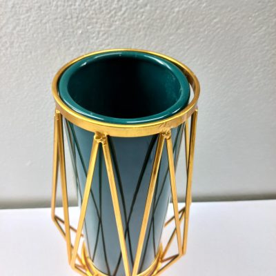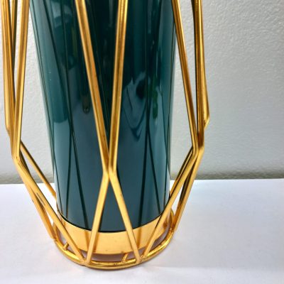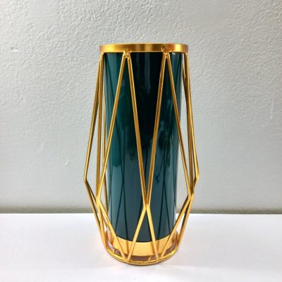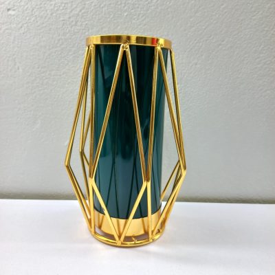 Gold Flower Vase Decoration for Living Room Geometric Glass Vase with Metal Stand for Flowers Rose Home Office Wedding Centrepiece (Metal Stand/Dark Green Vase