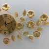 Golden Floral & Leaf Wall Clock – Elegant Botanical Design