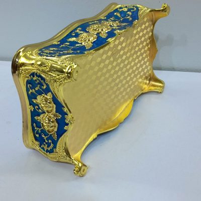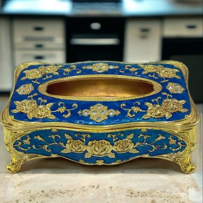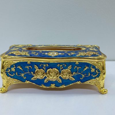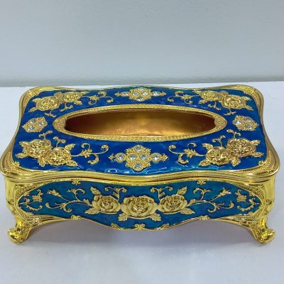 Metal Body Blue & Golden Color Rose Design Tissue Box Holder