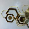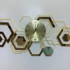 Make a bold statement with this striking Modern Geometric Hexagon Wall Clock. This contemporary timepiece features an intricate arrangement of open and solid metallic hexagons in a luxurious golden finish, creating a captivating three-dimensional effect on your wall. The central clock face, with its clear numbering and sleek hands, seamlessly integrates into the geometric design, offering both functionality and artistic flair. Perfect for modern and minimalist interiors, this wall clock is an eye-catching decorative piece that adds sophistication and a touch of abstract art to your living room, office, or hallway.