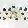 - Design: Horizontal metallic leaf motif with a central circular clock.