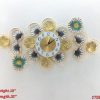 Abstract Floral/Petal Design: Features layered metallic petals in gold, silver, and teal, surrounded by golden rings for a modern and artistic look.