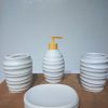 Bring elegance and organization to your bathroom with this modern 4-piece ceramic accessory set. Featuring a clean white finish with a textured wave design, this set combines functionality with a minimalist, luxurious style.