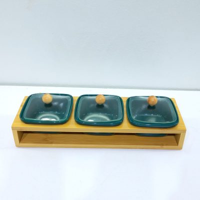 Pieces Ceramic Snack Bowl Set with Glass Lid Afternoon Tea Snack Dessert Tray Grid Plate Nuts Bowl Set 15502