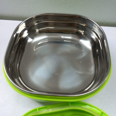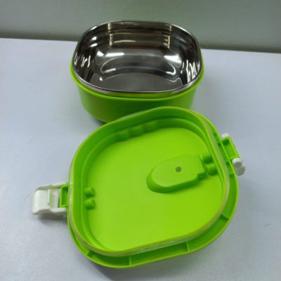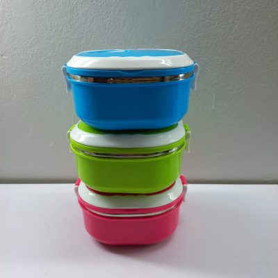 A food-grade PVC tiffin box with a metal exterior offers a durable and convenient solution for carrying your meals on the go. Here’s a description: