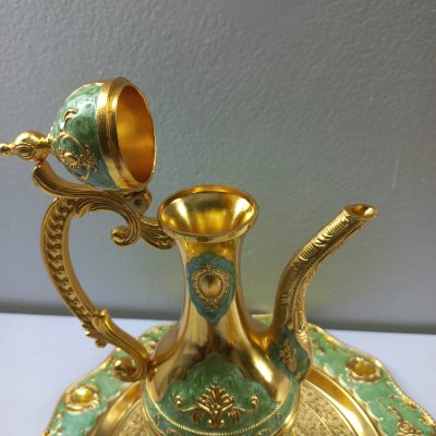 Shinny golden metal surai set round tray jug with siz pcs cup tea set