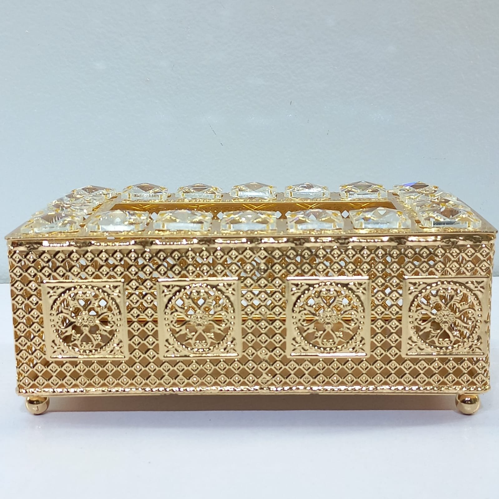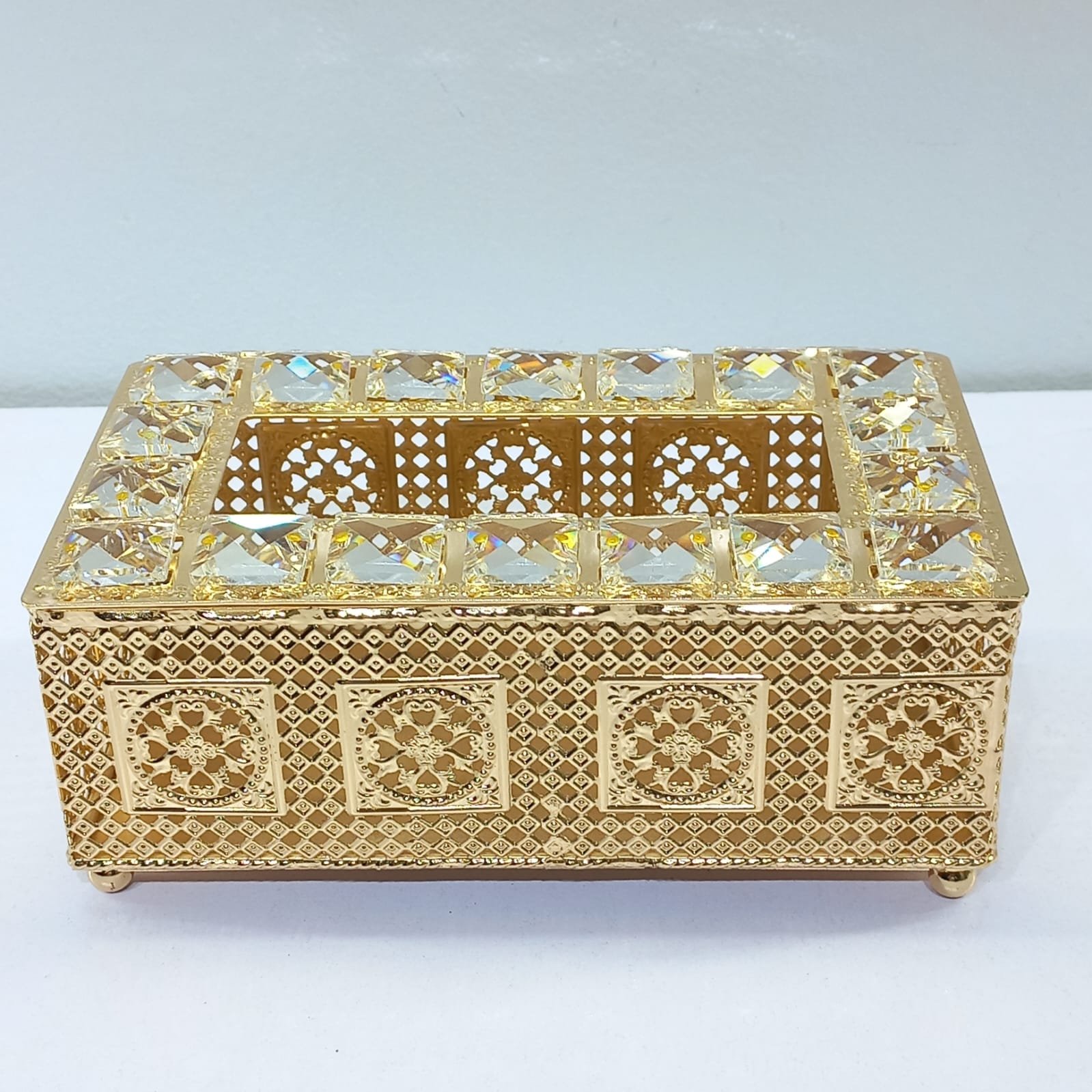 Add a touch of regal sophistication to your home or office with this exquisite Luxury Gold-Plated Tissue Box. Designed for those who appreciate the finer details, this piece transforms a simple household necessity into a stunning decorative accent.
