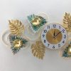 Bring the lush beauty of the tropics into your home with this stunning Tropical Leaf & Floral Wall Clock. This unique timepiece features an artful arrangement of detailed metallic leaves in shimmering gold, interspersed with charming floral accents in a striking blend of teal and gold. The central clock face, with its clear numbering, provides practical timekeeping while serving as the heart of this beautiful botanical display. Perfect for adding a touch of exotic elegance and a refreshing natural feel to your living room, dining area, or entryway, this wall clock is both a functional item and a captivating piece of wall art.