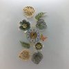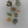 This unique and artistic clock features a lush vertical arrangement of beautifully crafted metallic leaves and flowers in radiant gold, lustrous silver-blue tones, and vibrant green. A delicate golden butterfly adds a touch of whimsical charm to the composition. The central golden clock face, with clear black Arabic numerals from 1 to 12, is seamlessly integrated into this flowing design, ensuring both easy readability and a delightful aesthetic. Its vertical orientation makes it an ideal focal point for narrower wall spaces, columns, or as an accent in a gallery wall arrangement. Perfect for adding a sophisticated, natural, and serene touch to your living room, entryway, dining area, or office.