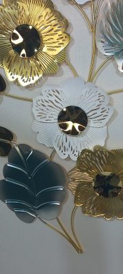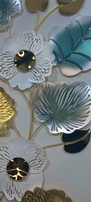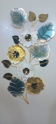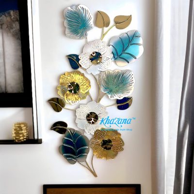 Elevate your home’s aesthetic with this striking vertical metal wall art. This captivating piece showcases a cascade of beautifully designed flowers and leaves, rendered in a sophisticated palette of radiant gold, pristine white, and serene blue. The intricate layering and varied textures of the metallic elements create a dynamic and elegant display, making it an ideal statement piece for narrow walls or as part of a larger gallery.
