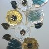 Stunning Vertical Floral Metal Wall Art in Gold, White & Blue