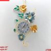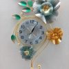 This unique clock features an artistic arrangement of beautifully crafted metallic flowers in radiant gold and lustrous silver-blue tones, complemented by vibrant green leaves and delicate golden tendrils with berry-like accents. The central clock face, in a modern silver finish with clear black Arabic numerals, is seamlessly integrated into the flowing floral design, ensuring both easy readability and aesthetic harmony. Its vertical orientation makes it an ideal focal point for narrower wall spaces, columns, or as an accent in a gallery wall arrangement. Perfect for adding a sophisticated and natural touch to your living room, entryway, dining area, or office.