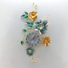 Artistic Floral Design: Features striking metallic flowers in gold and silver-blue, accented with green leaves and golden tendrils.