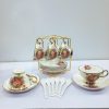 Elegant Golden and White Surai Set with 6 Cups and Serving Tray