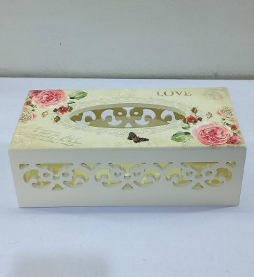 Add a touch of vintage charm to your everyday essentials with this beautifully crafted wooden tissue box. Featuring a soft cream finish with cut-out scroll patterns on the sides and an elegant double rose design on top, it blends functionality with decorative flair. Ideal for cozy, feminine, or shabby-chic interiors, this piece elevates any space with its romantic aesthetics. Keep your tissues neatly organized while enhancing the beauty of your room.